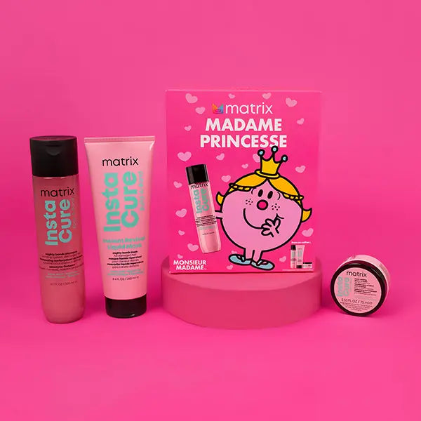 A chacun son Monsieur Madame ! Laissez-vous séduire par l'un des 4 coffrets trio Matrix & Monsieur Madame, disponibles en exclusivité dans vos salons de coiffure. Une occasion unique d'offrir ou de s'offrir une routine de soin professionnel infusée de la bonne humeur des célèbres personnages Monsieur Madame.