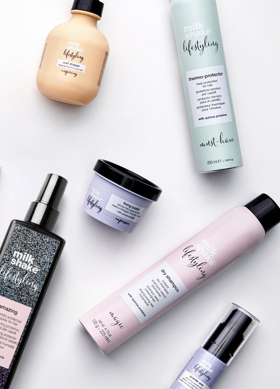 - Protéines de lait : nourrissent et renforcent la fibre capillaire.